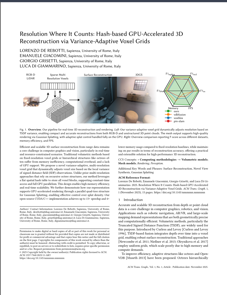 title = {Resolution Where It Counts: Hash-based GPU-Accelerated 3D Reconstruction via Variance-Adaptive Voxel Grids},